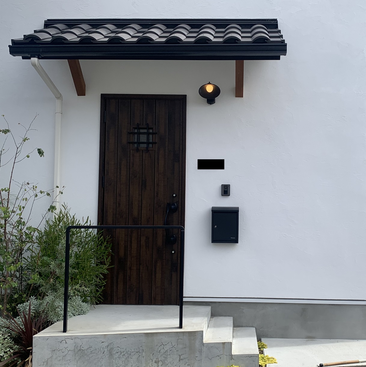 ◎白い塗り壁風の外観に三角屋根