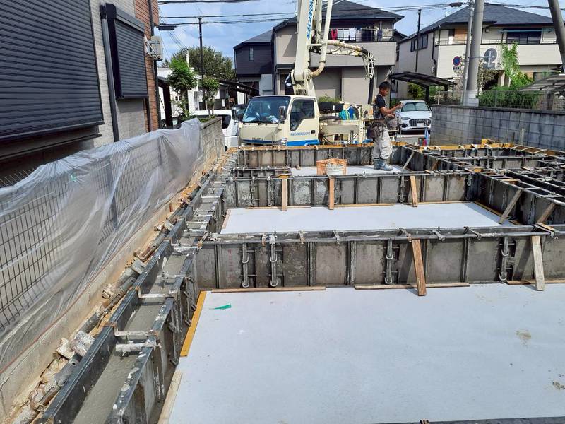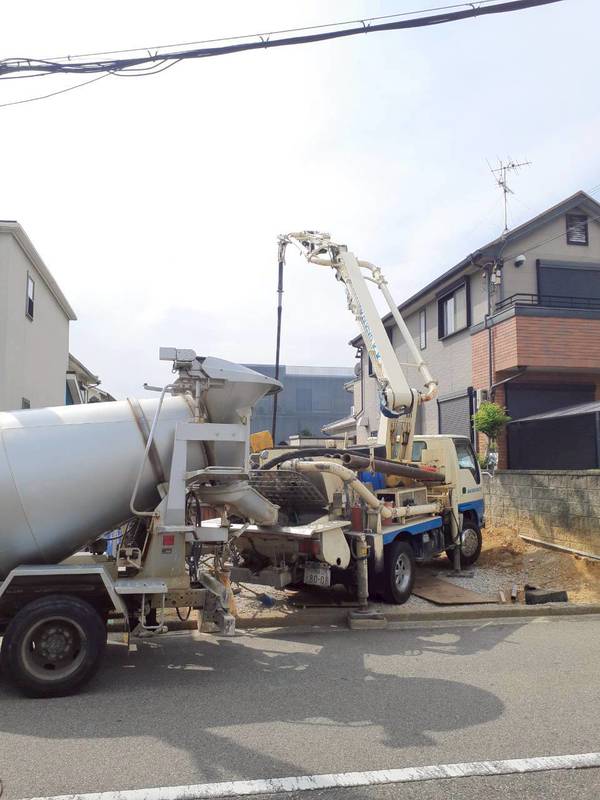 型枠を組んで、ミキサー車から生コンをポンプ車で隅々まで送り打設していきます。(ポンプ車はアームが伸びるので、小さい子供が前を通れば必ず喜んで見てますね😊😊)