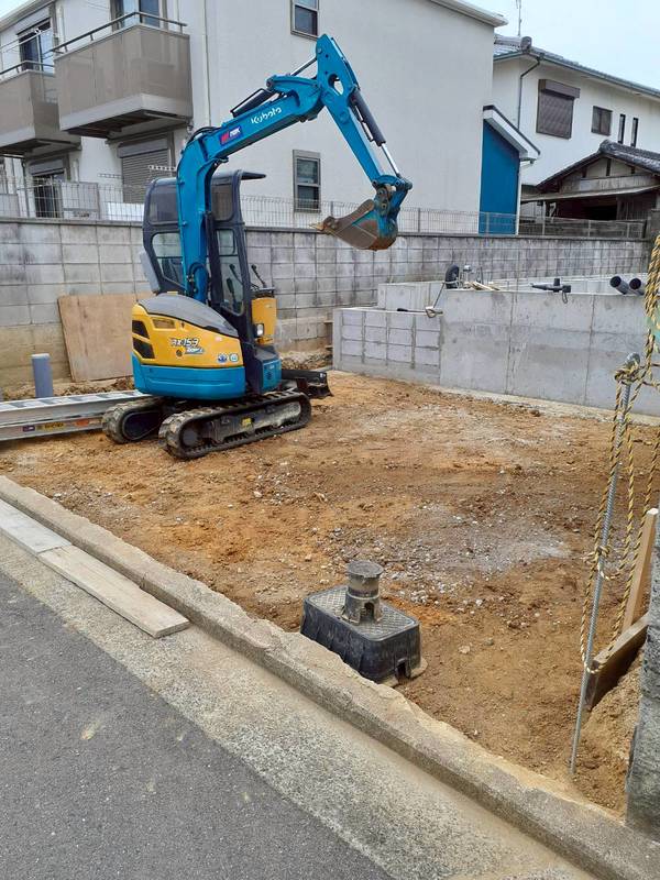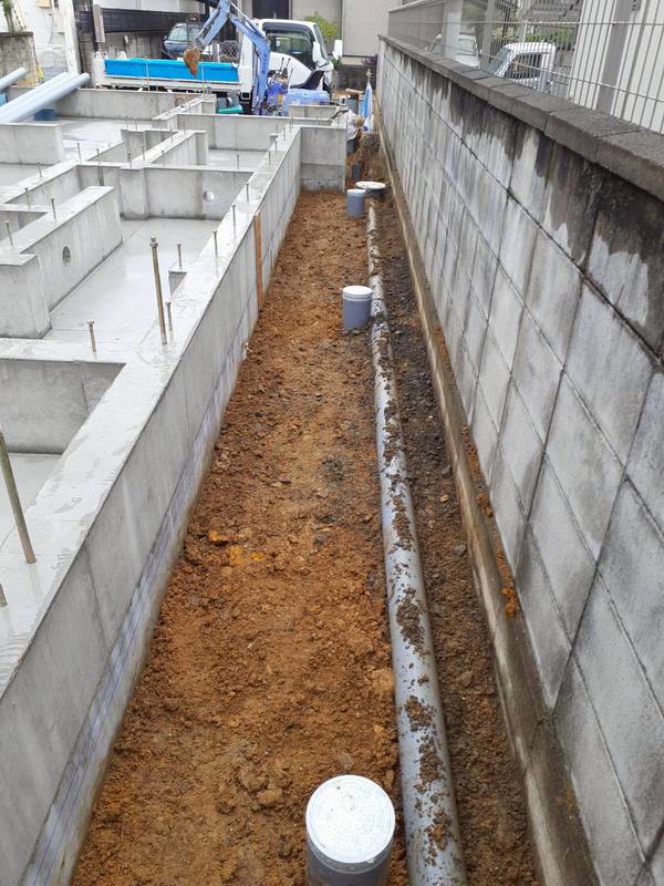 設備屋さんが外部排管を設置するので、一度掘削します。