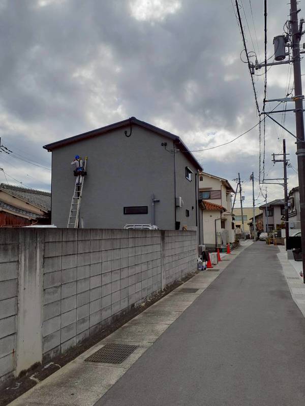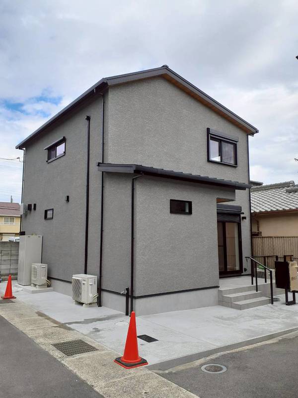 外構工事もきれいに終わり、エアコンやエコ給湯器も設置しています。