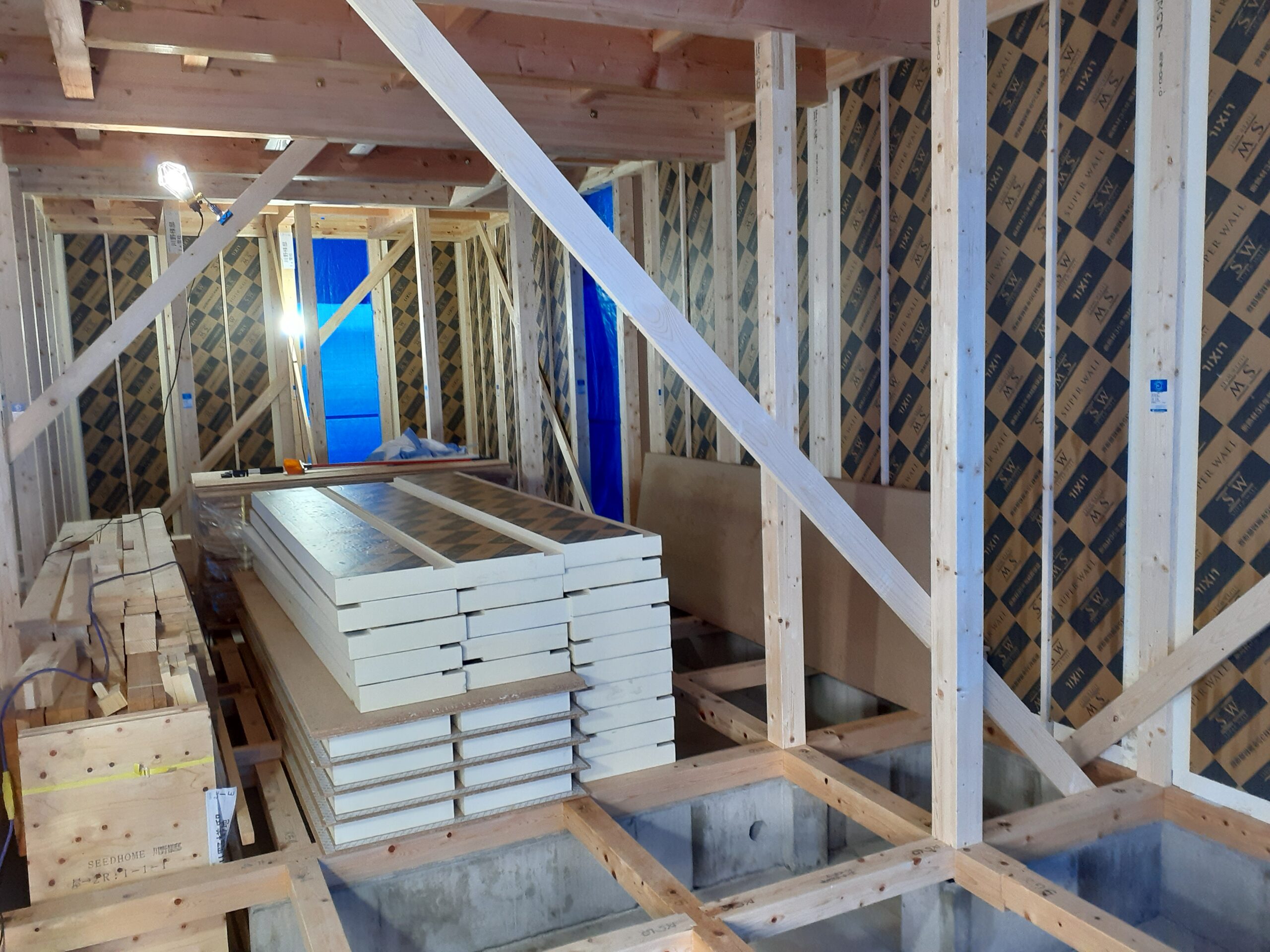 SEEDの上棟は、初日はレッカー車で棟まで終わらせます。