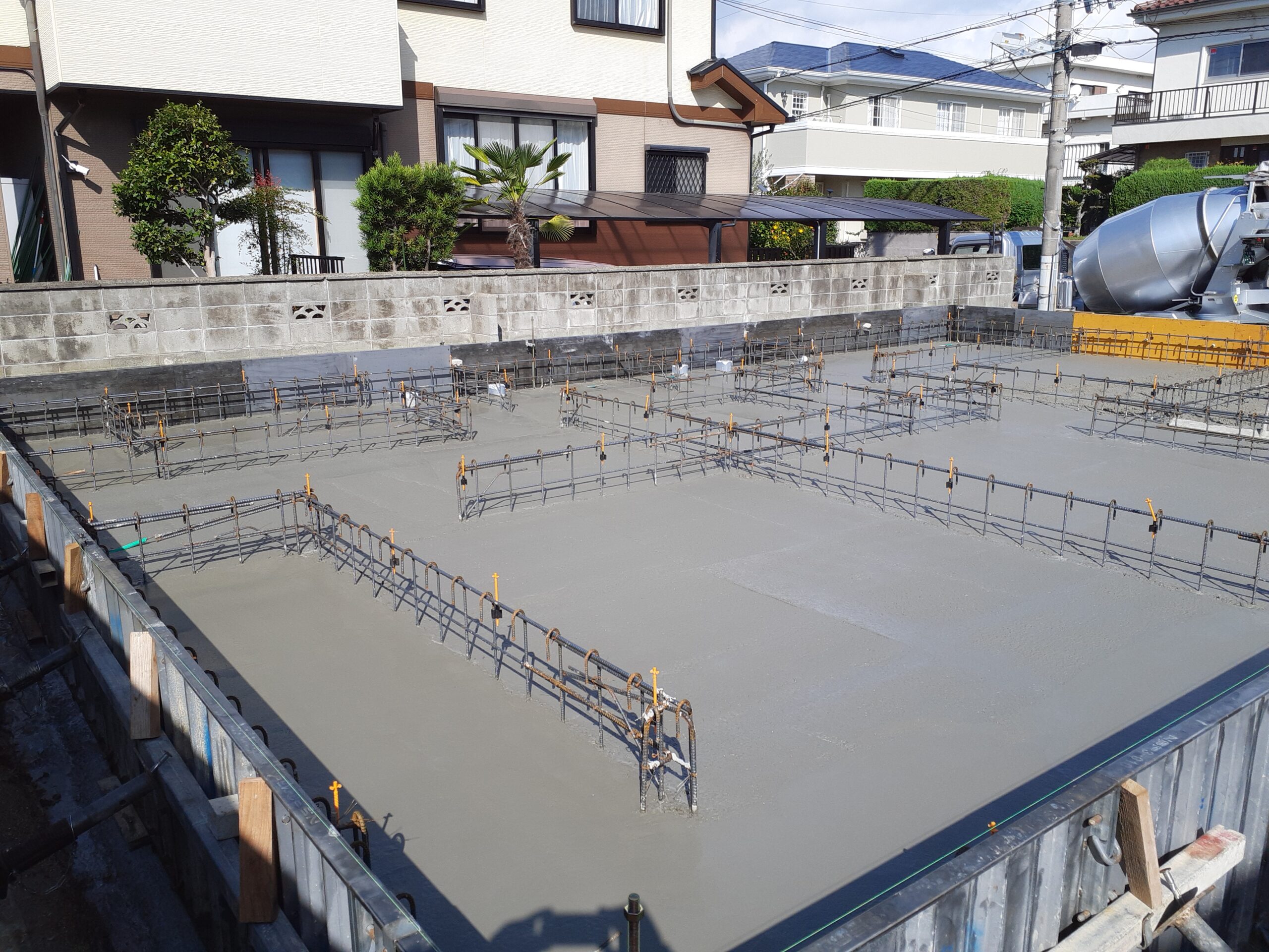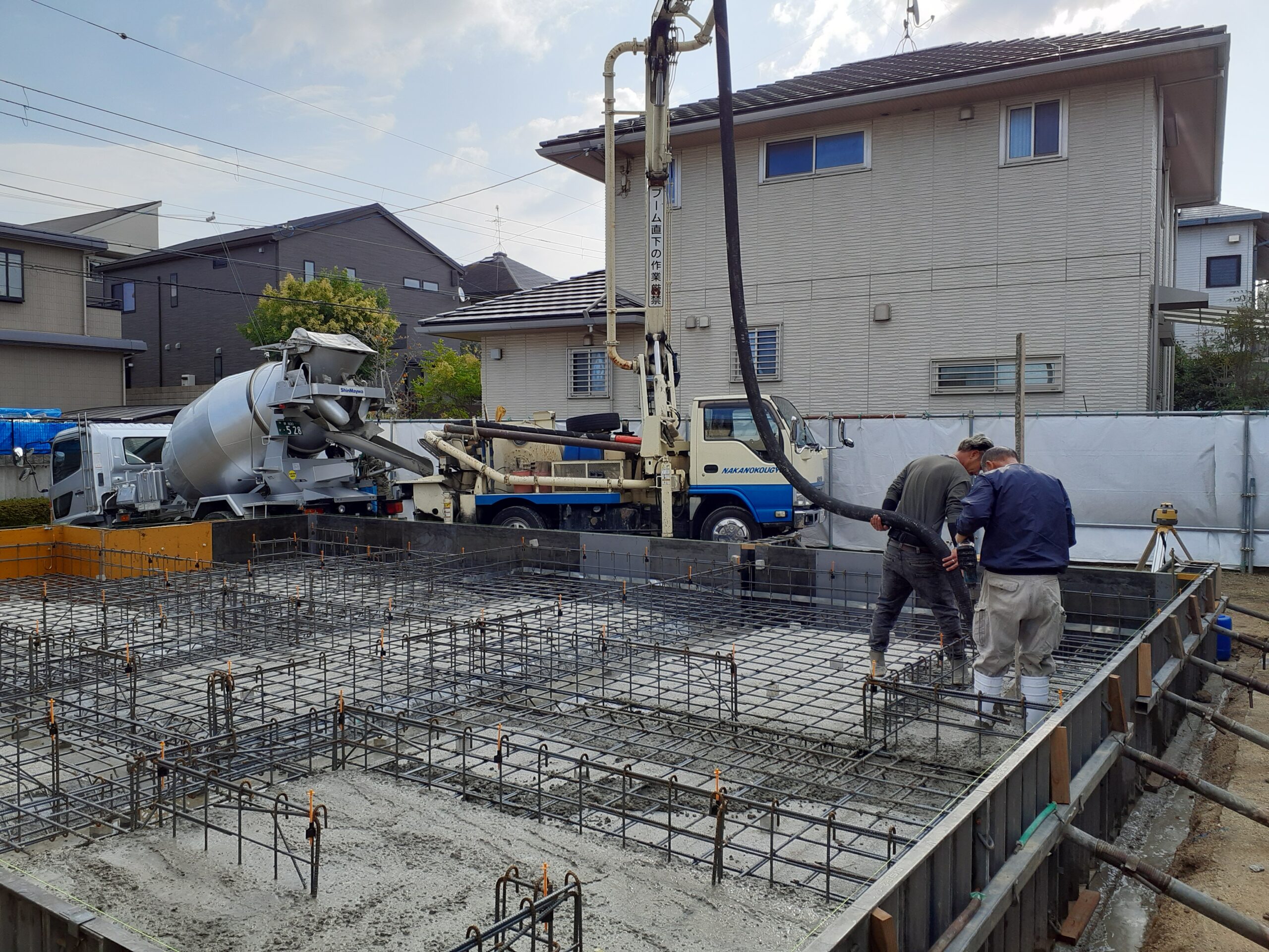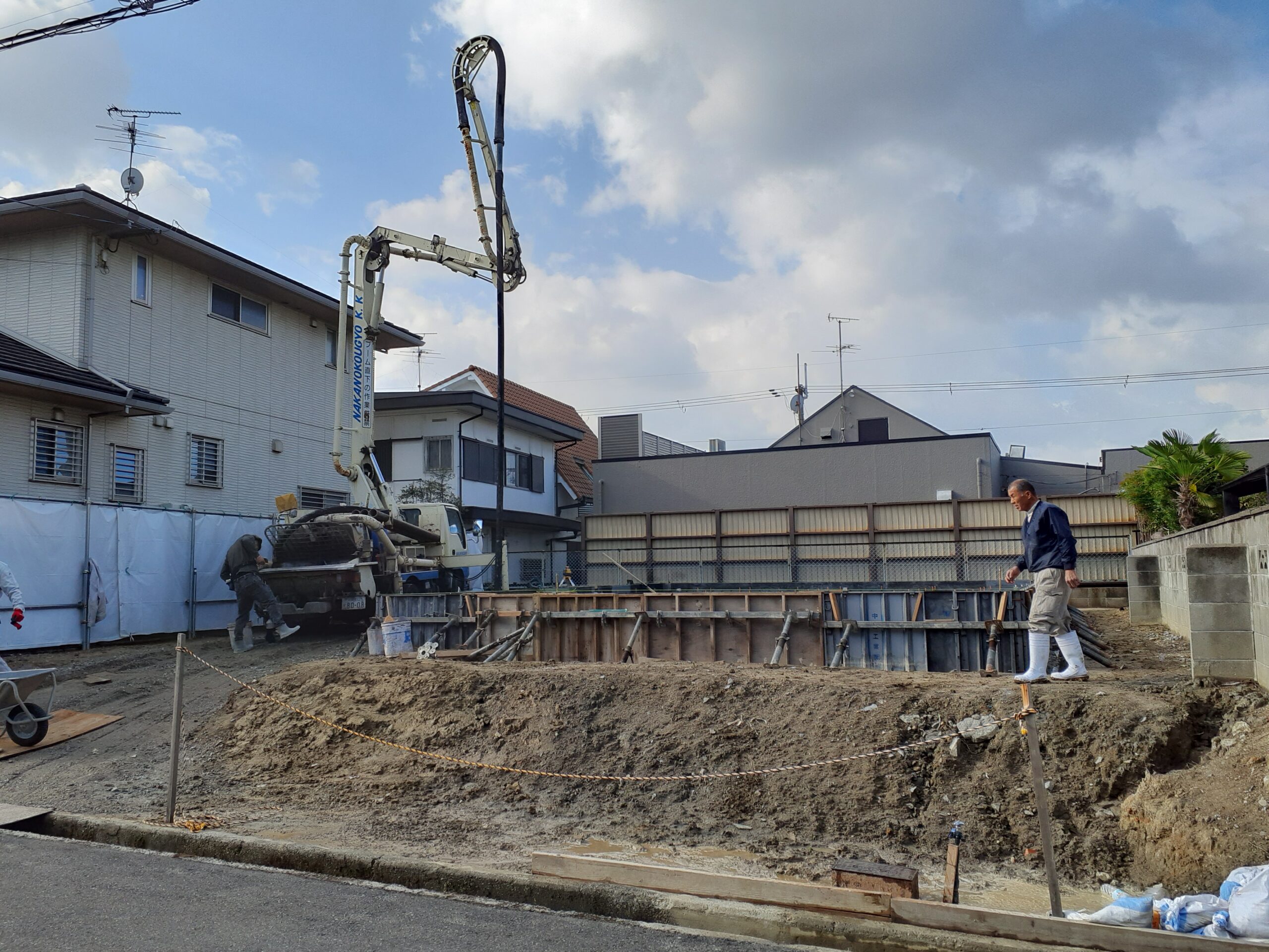 今回のSEEDHOMEの作業内容ですが、大阪狭山市K様邸で基礎工事での生コン打設をご報告させて頂きます。