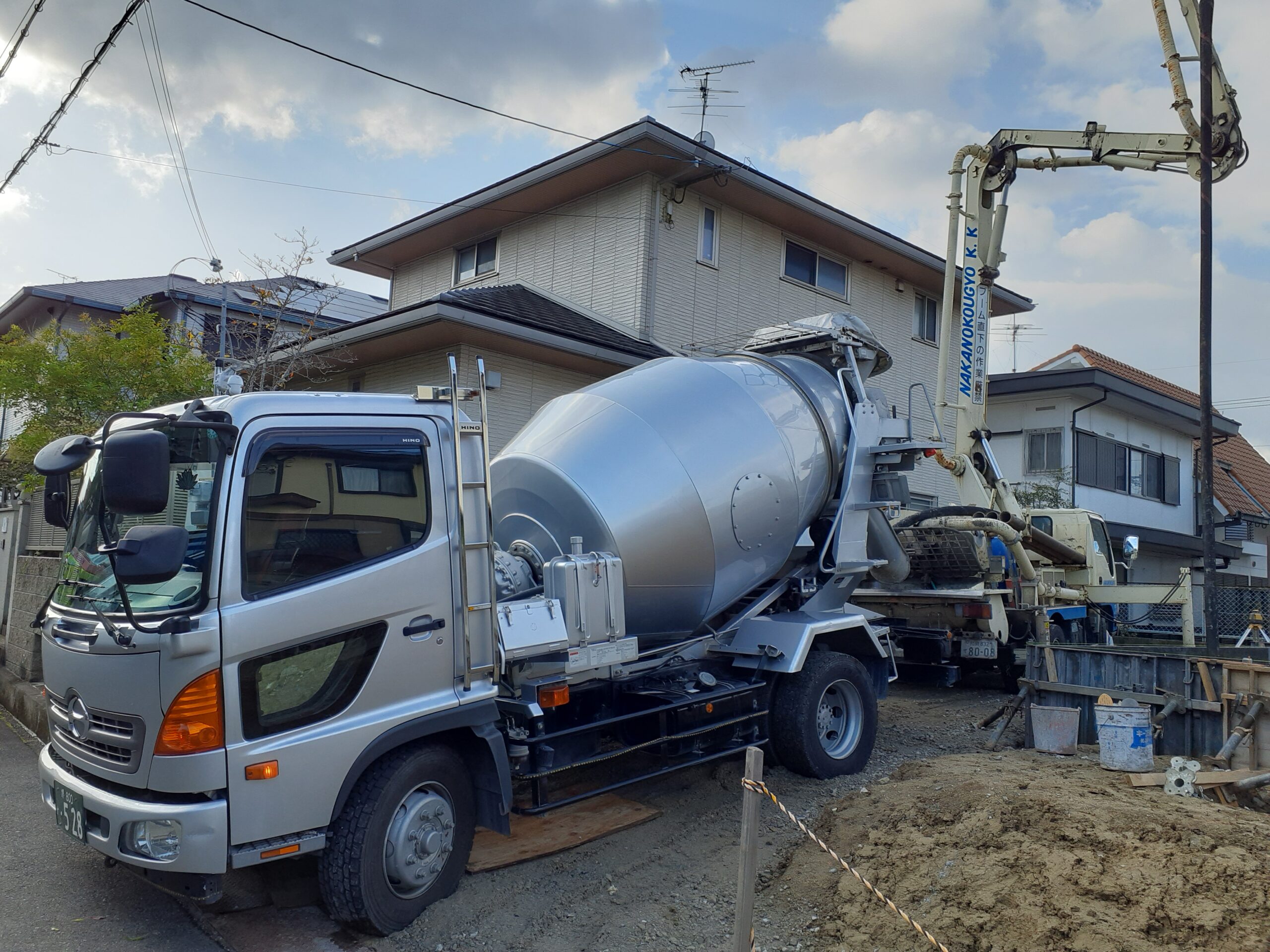 今回は基礎部分が大きいので、ミキサー車×6台で約21㎥💦