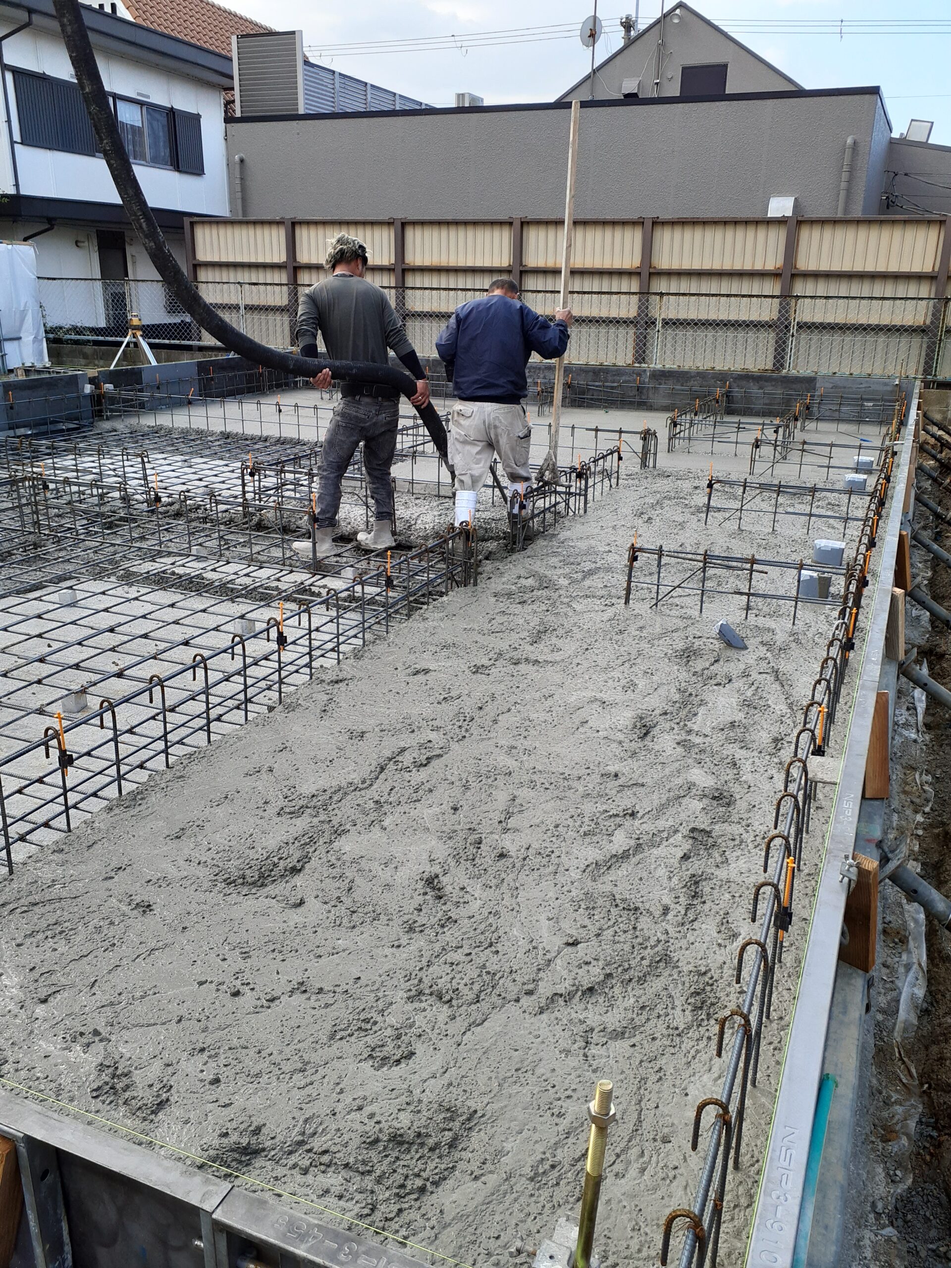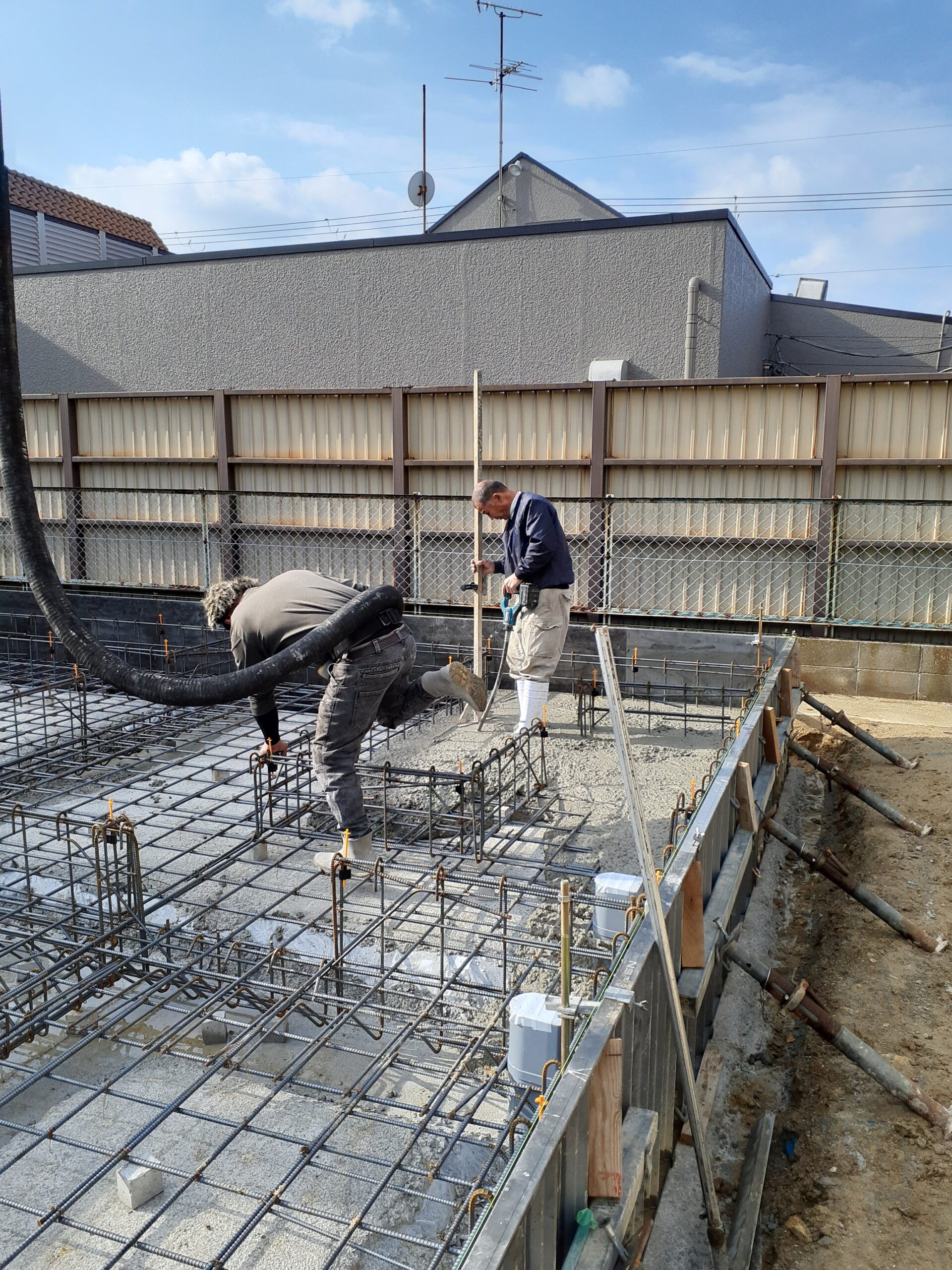 生コン打設は時間がかかりすぎるとコンクリートの品質低下に繋がるので休憩なしで作業を進めていきます💦