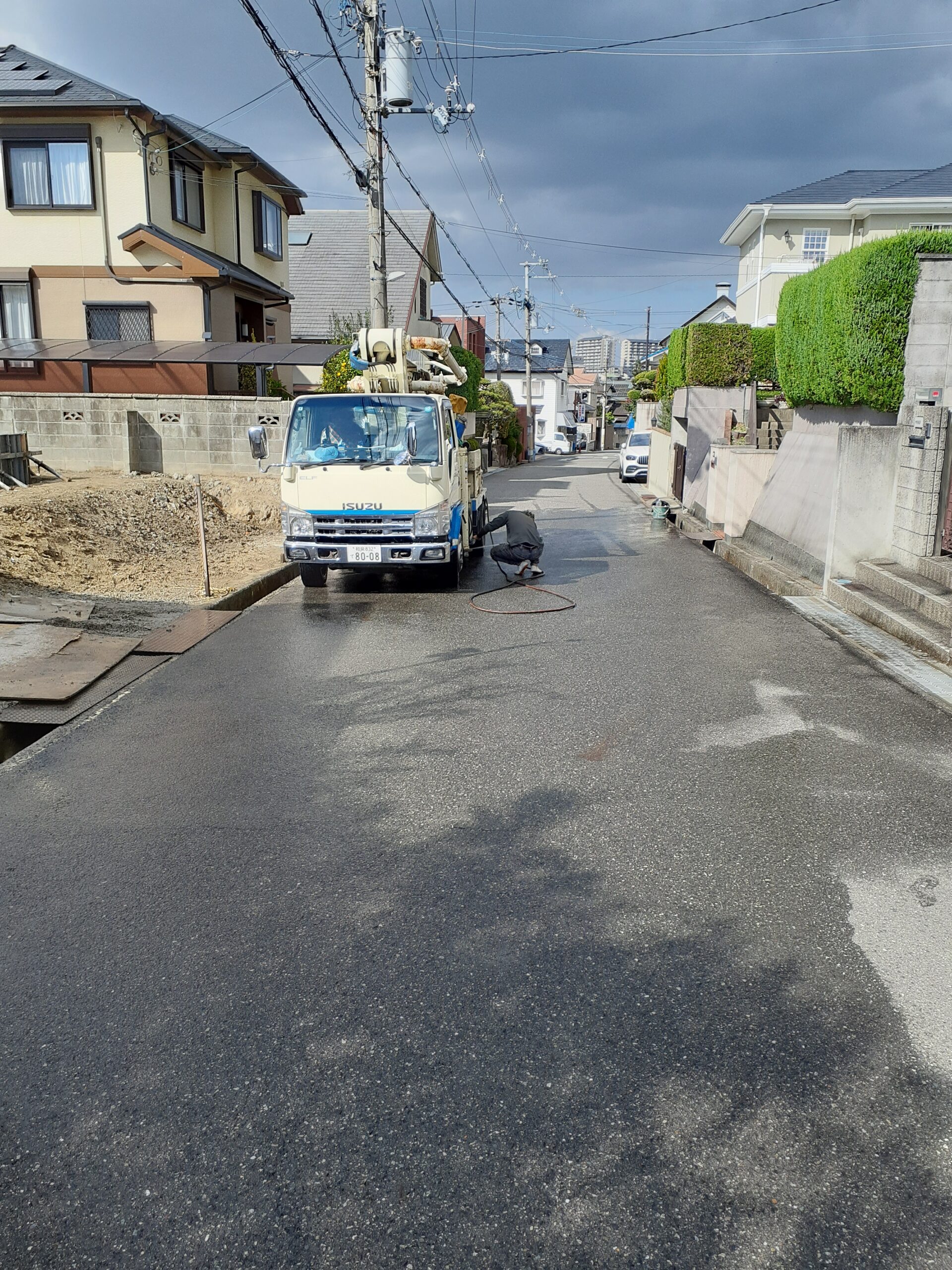 作業が終れば車両のタイヤや道路の汚れの清掃です✨