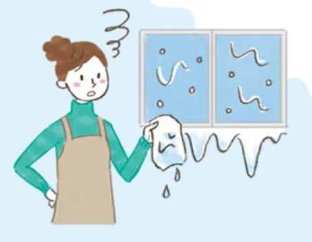 *寒い日の朝、窓に結露がビッシリ、掃除が大変