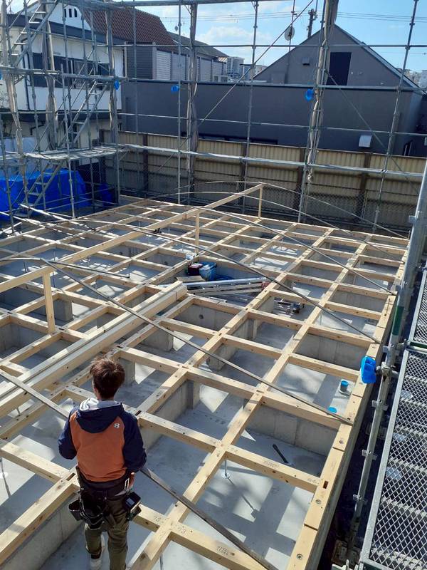 そして大工さんが2階の天井下地を完了しました。
