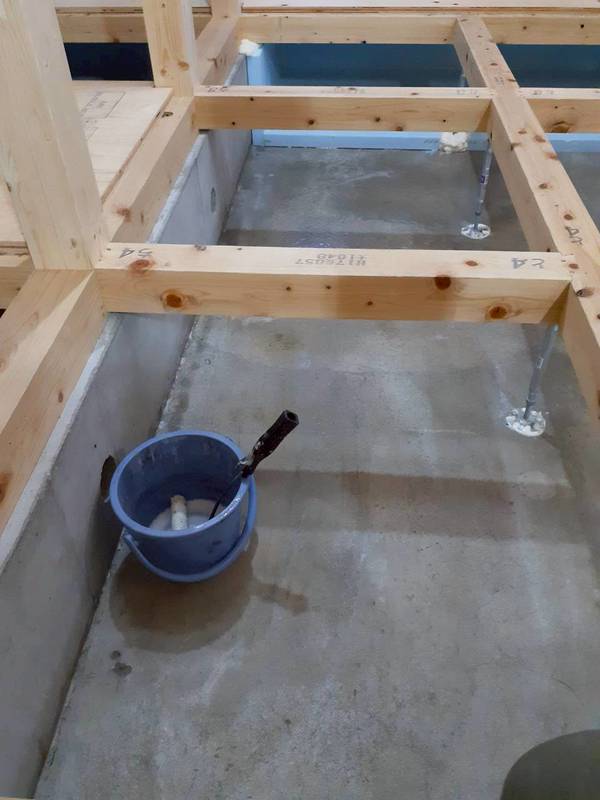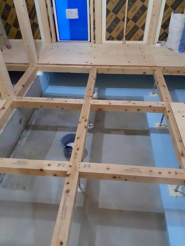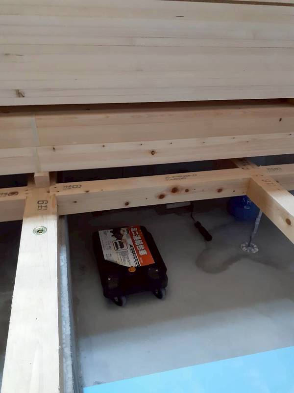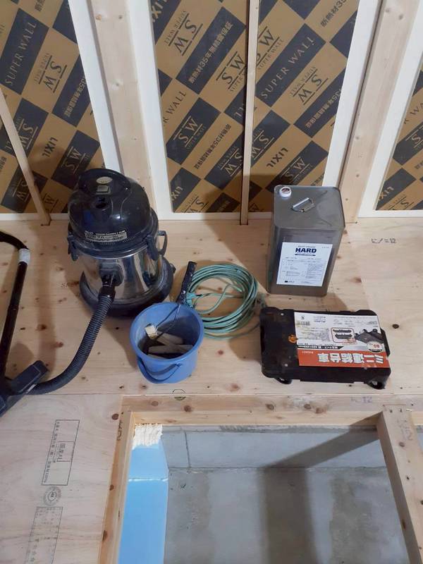 こんな感じで大工さんが床を貼らずに開けてくれてるので塗りやすいです😊