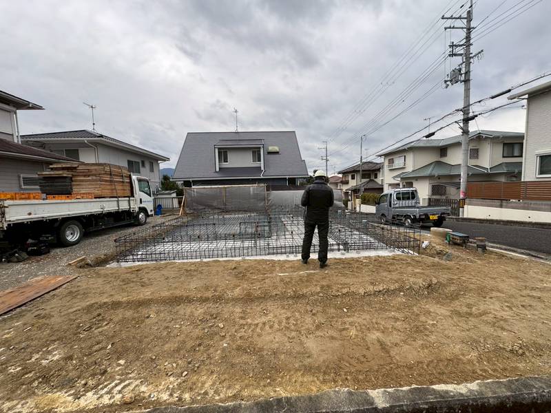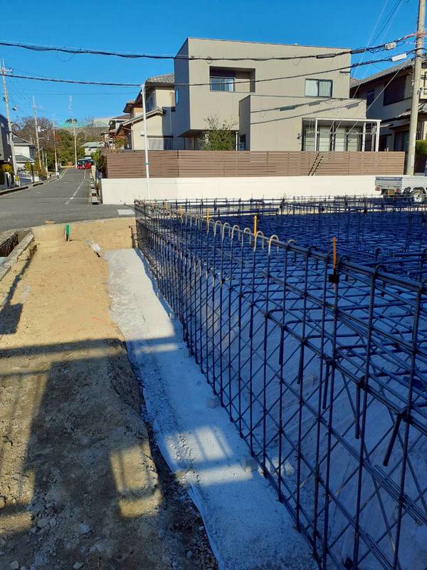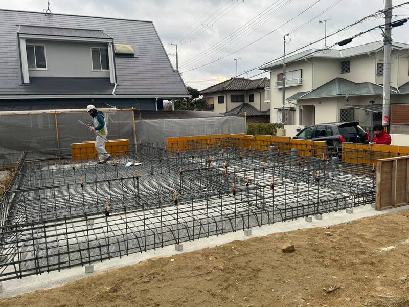 基礎工事は鉄筋施工が完了しました。