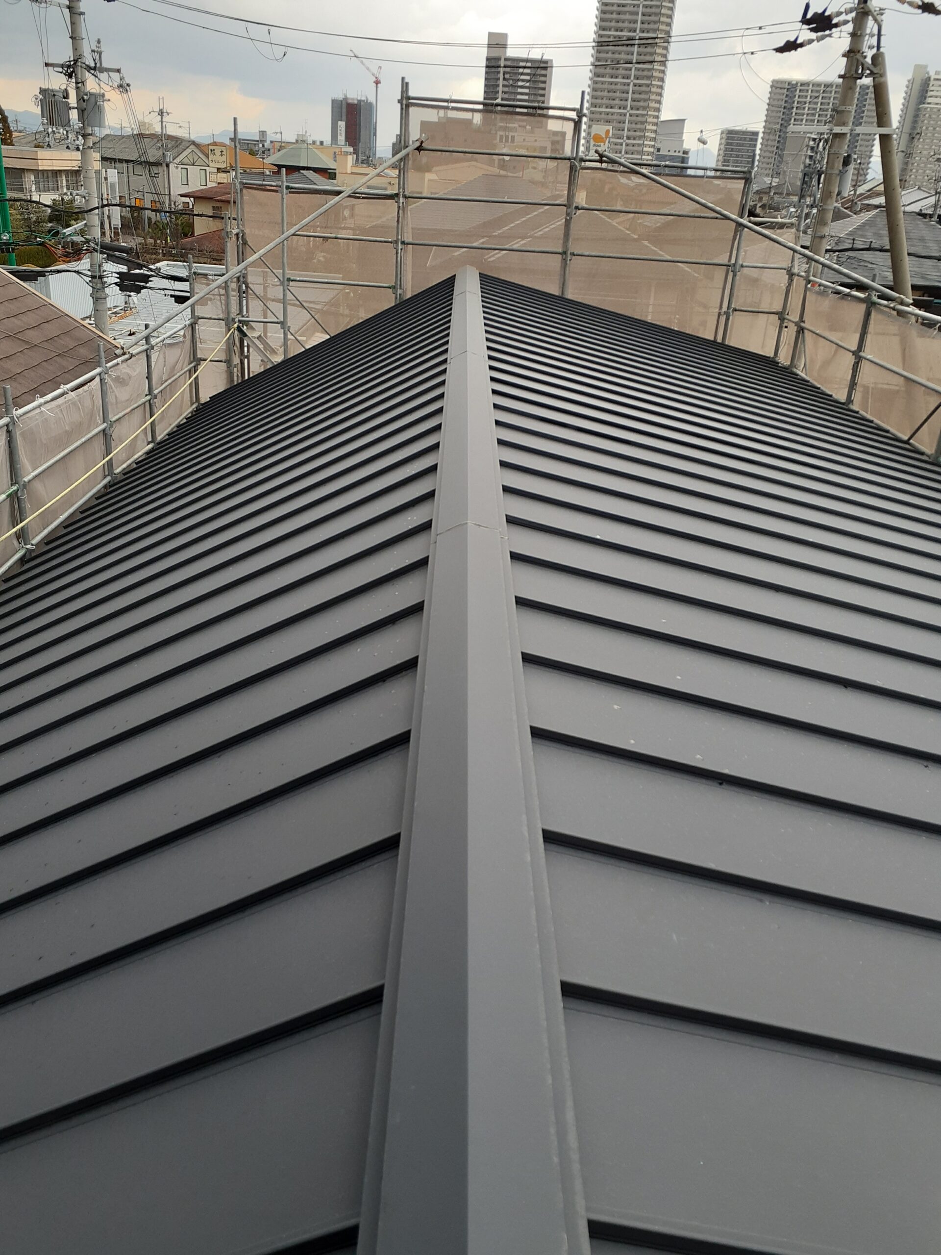 外部は屋根工事が完了しています。