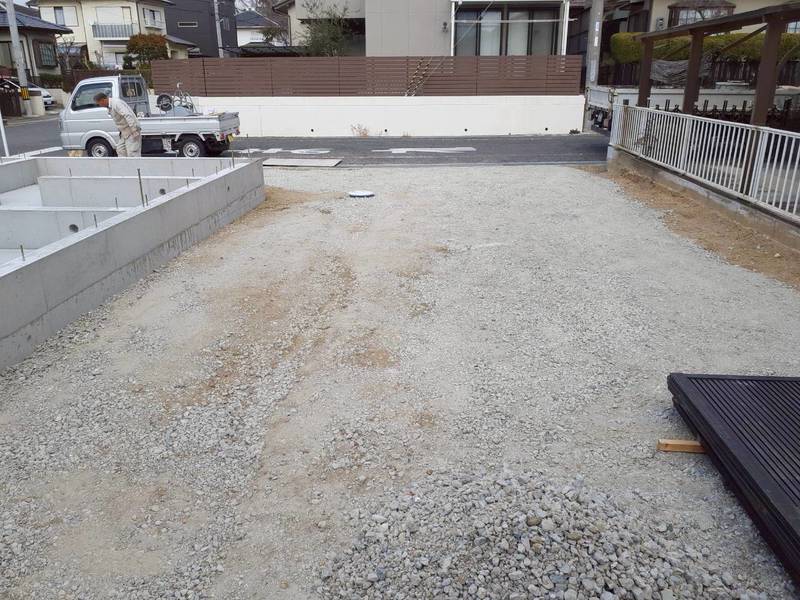 一度掘削した土は生みやすい(崩れやすい)ので、砕石を入れて転圧していきます。