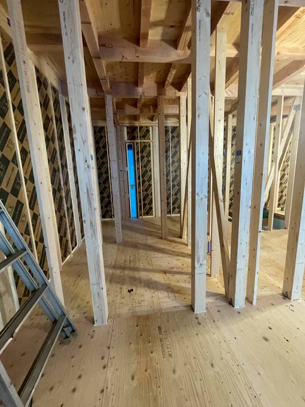 床下の作業が終れば、大工さんが床板を貼って構造金物を取り付ければ中間検査です。