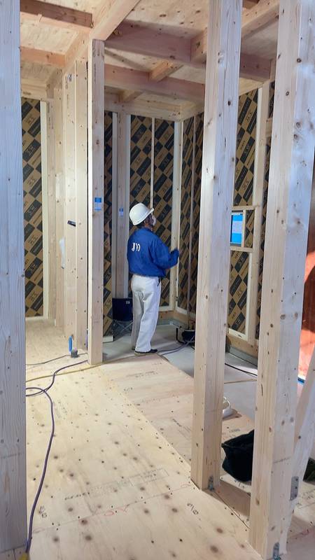 大工さんがSWパネルを施工しています。
