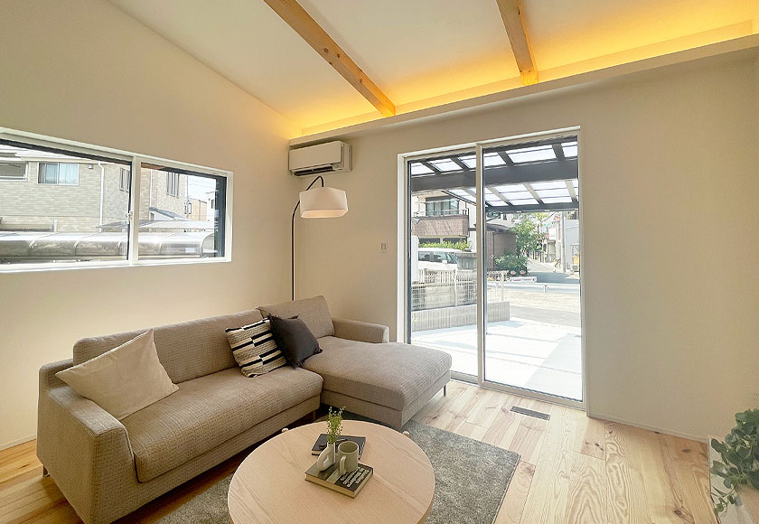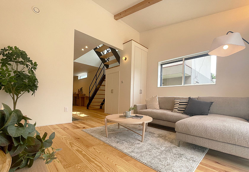 《 リビング 》リビングは無垢床や天井の梁など、自然素材で心温まる空間に◎