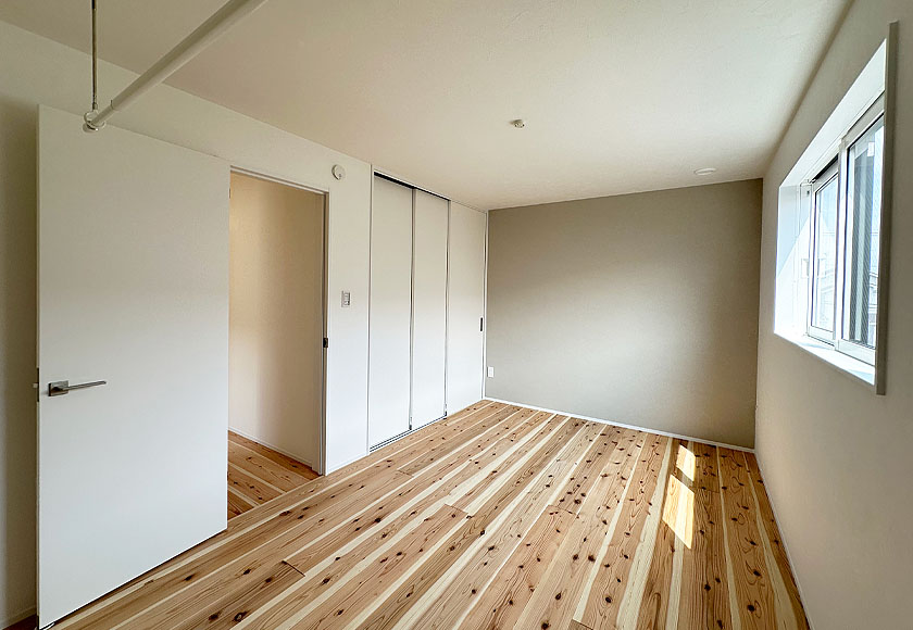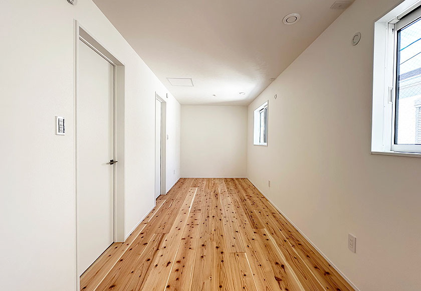 2階も無垢床を採用して、調湿作用で快適な寝室空間に。
