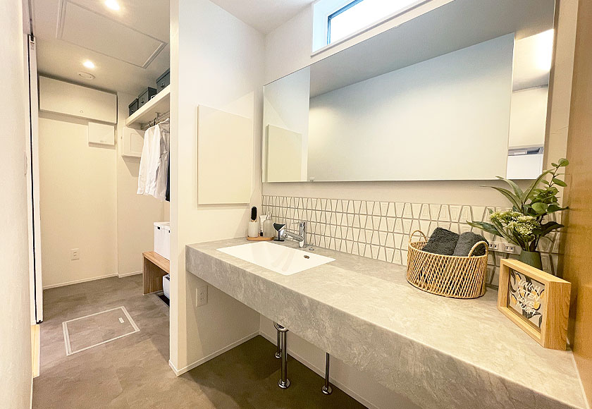 《 洗面 》長いカウンターを採用で、お子様たちが大きくなっても並んで使える◎