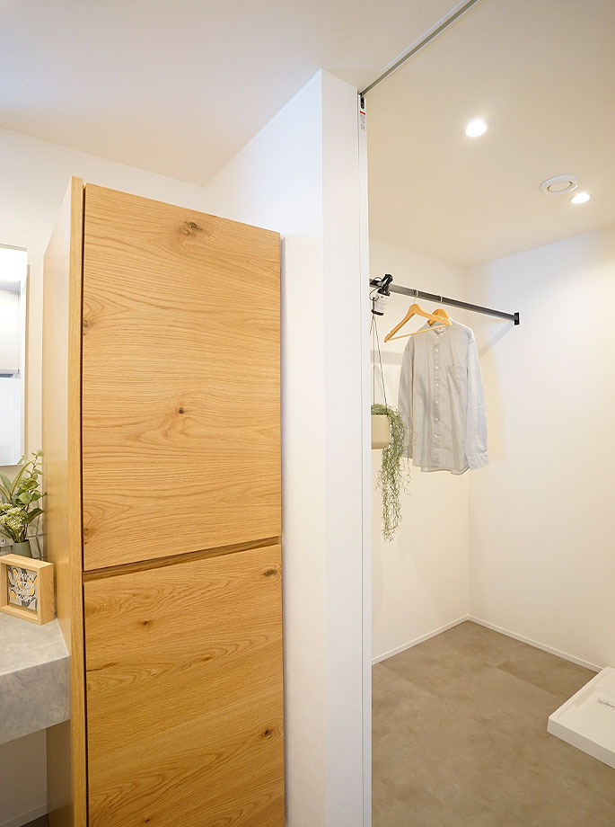 《 ランドリールーム 》バスルーム前には、室内物干しを完備したランドリールーム。