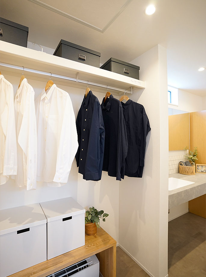 《 ファミリークローゼット 》洗面横にファミリークローゼットをご用意しました。