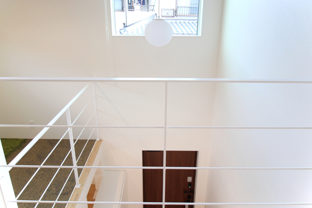 スキップフロアの横には吹き抜け。 土間を見下ろせるので、パパが帰ってくると子供たちは大喜びです。